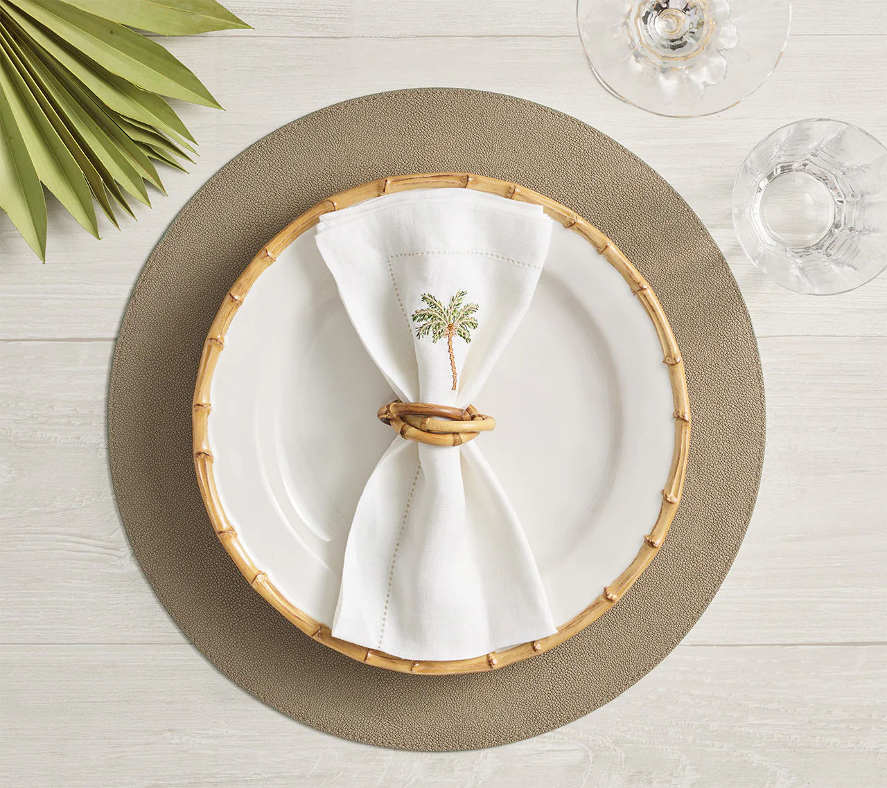 Add organic elegance to your table with this bamboo-inspired trinity napkin ring. Its natural design and refined style make it perfect for both casual and formal dining.