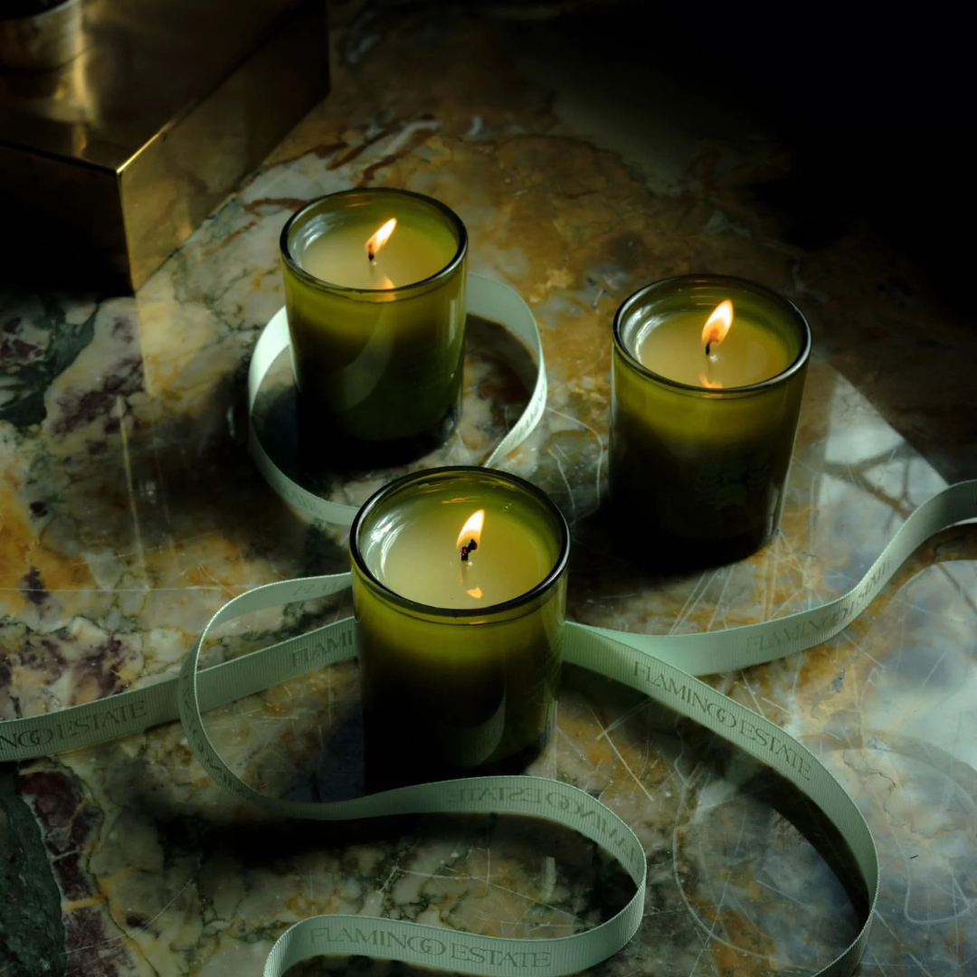 A scented candle that evokes the crisp, woody air of a forest, blending earthy vetiver and green Douglas fir with subtle herbal depth. As it burns, warm wax releases a grounding aroma that creates a calm, natural ambiance in any room.