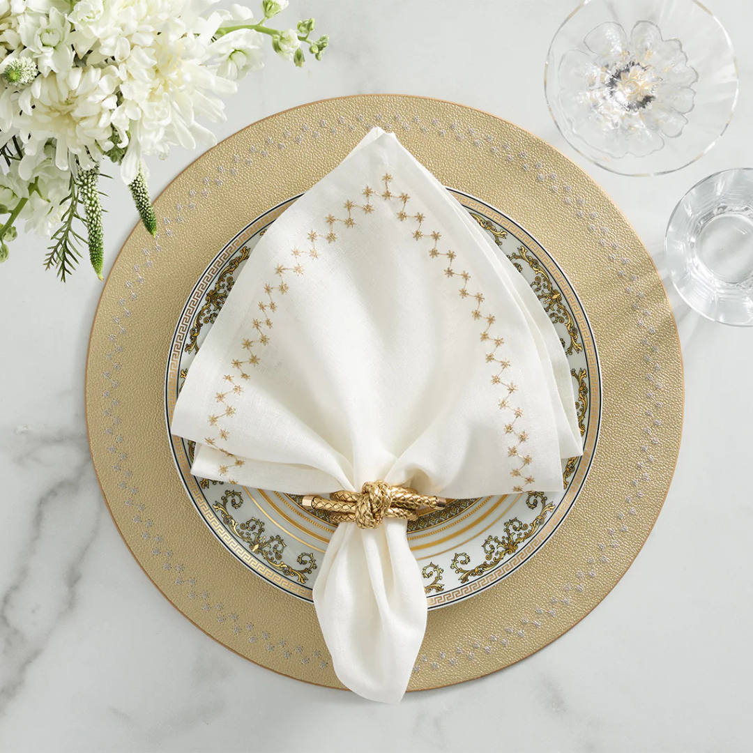 Elevate your table setting with the Kim Seybert Knot Napkin Ring in gold. Featuring a sophisticated rope-knot design and luxe metallic finish, it's perfect for both casual and formal dining.