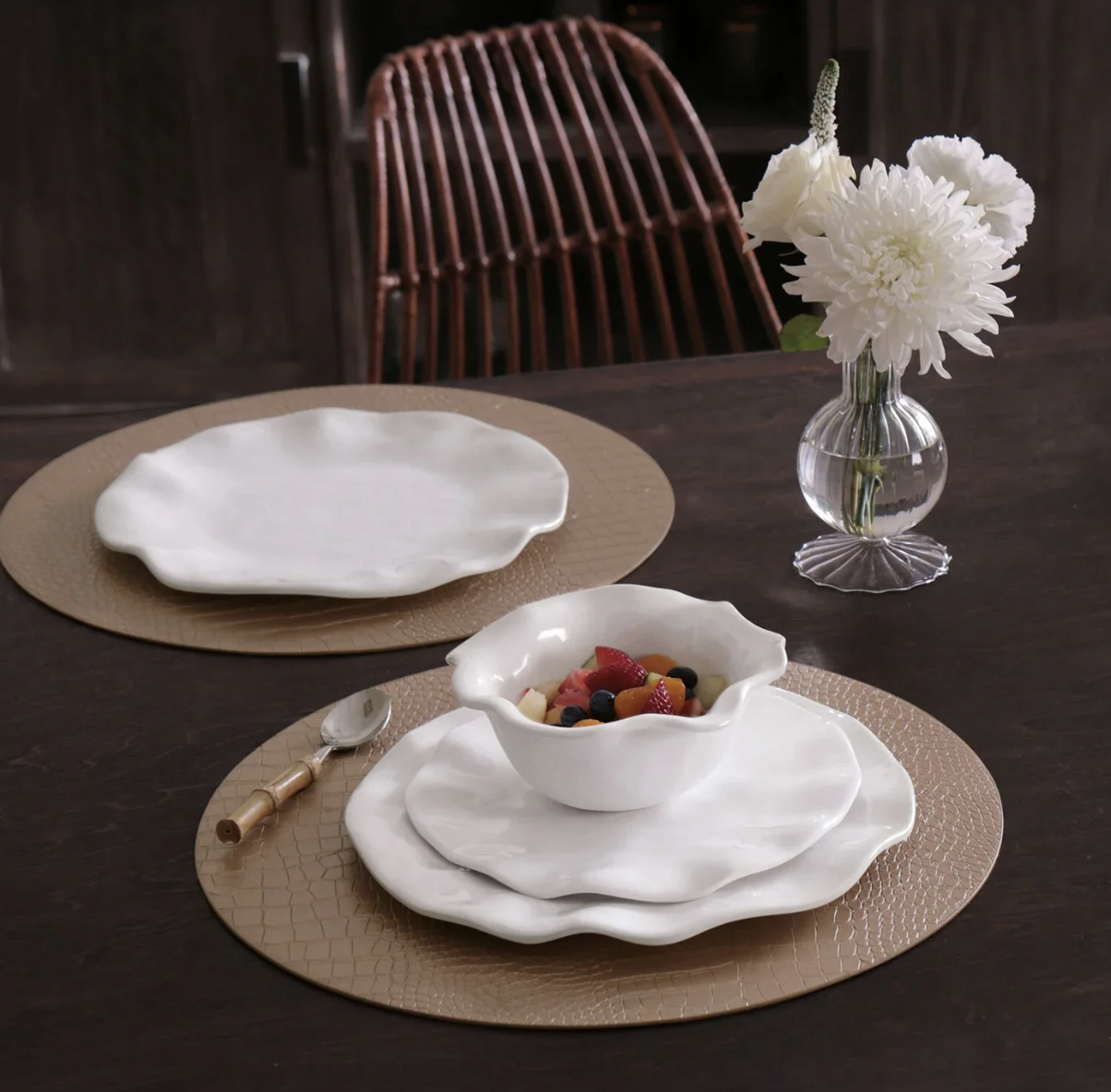 A stylish, textured cereal bowl that adds a touch of elegance to any breakfast or meal setting.