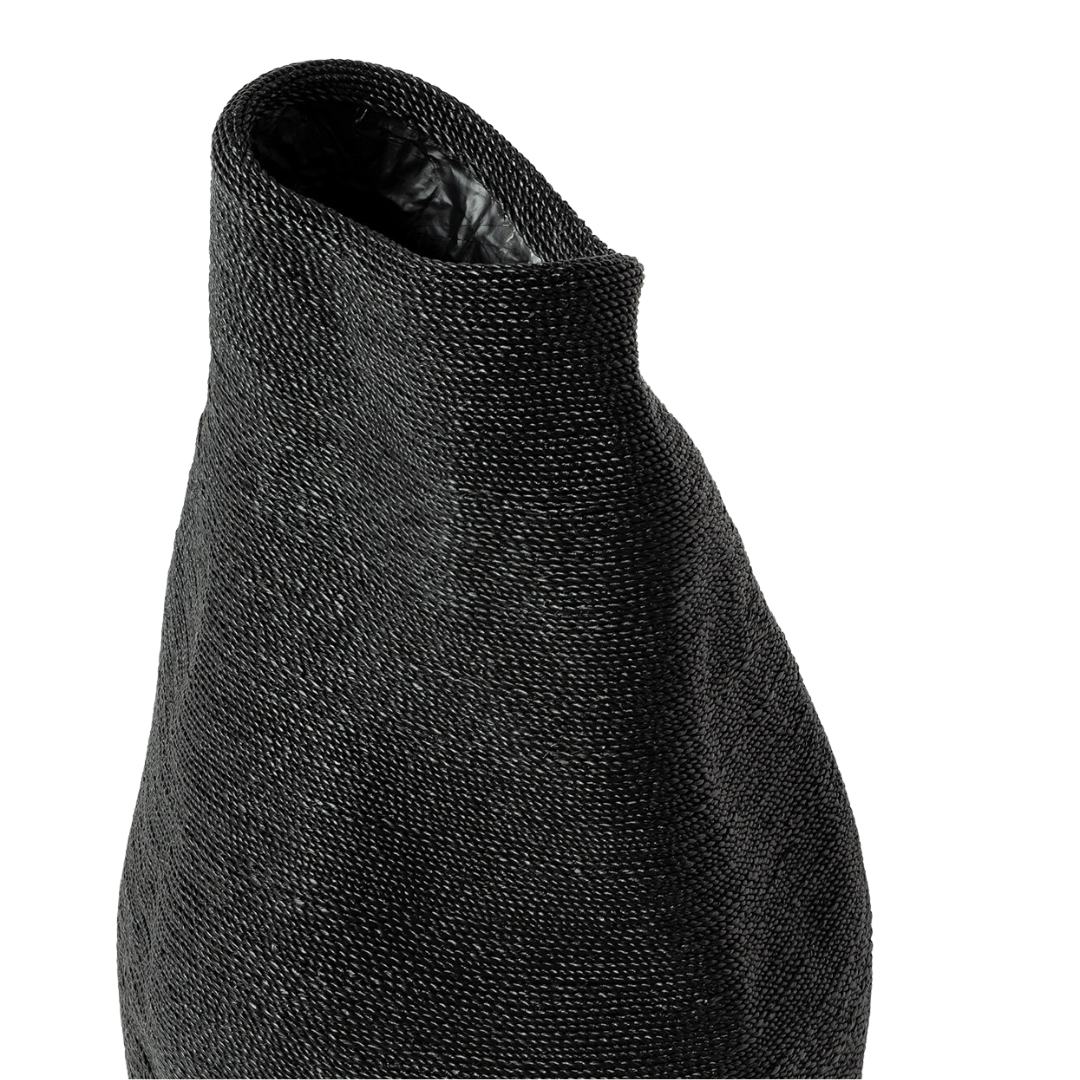 A tall, black Jaden urn featuring a sleek and modern design. Ideal for creating a striking focal point or as part of a contemporary vase collection in modern or minimalist interiors.