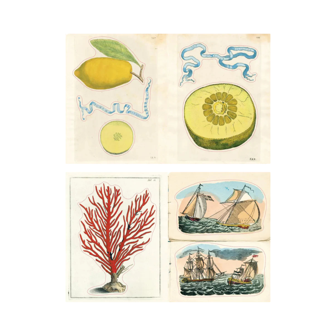 A whimsical sticker book filled with vintage-inspired artwork, perfect for decorating, journaling, and creative projects with timeless charm.