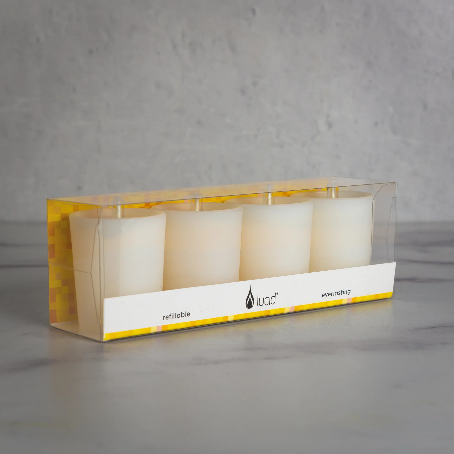 A set of natural votive candles designed to deliver a warm, realistic glow without melting wax or mess. Perfect for home styling, dining tables, and ambient lighting with long-lasting, refillable use.