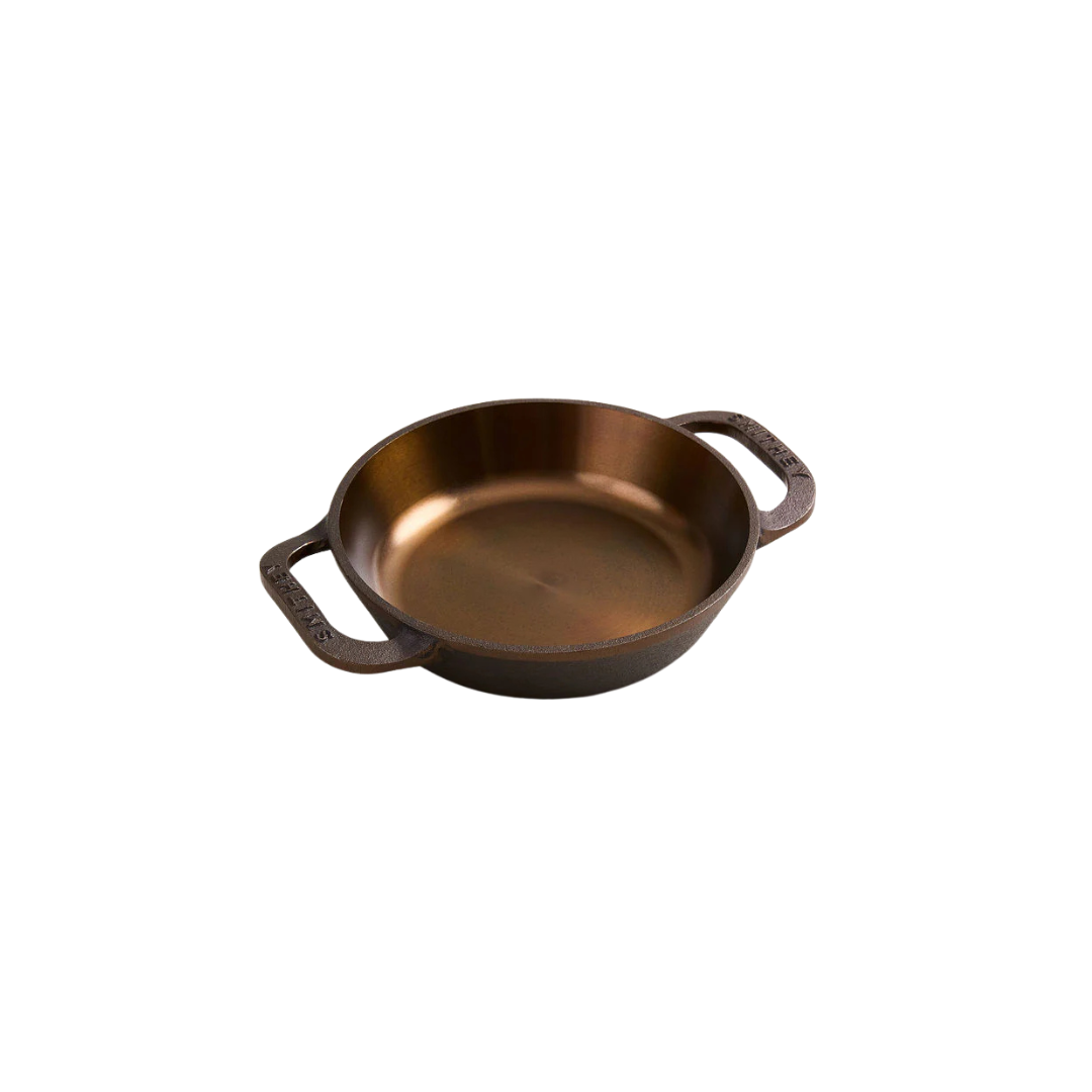 This pre-seasoned cast iron skillet features dual handles for easy lifting and even heat distribution, perfect for stovetop and oven use.
