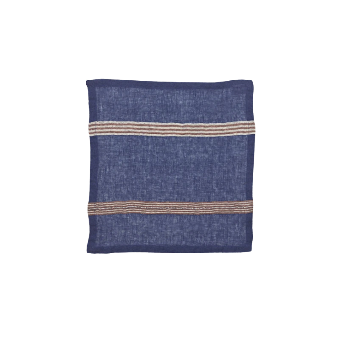 A soft Belgian linen napkin featuring a classic stripe design, finished with clean edges for an elevated, everyday table setting.