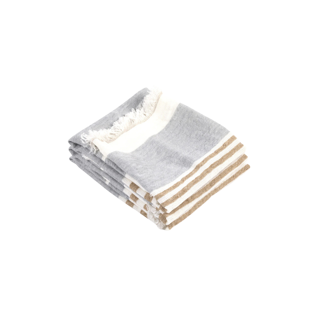 Soft, absorbent Belgian linen guest towel with a classic ash stripe — perfect for bathrooms or powder rooms.