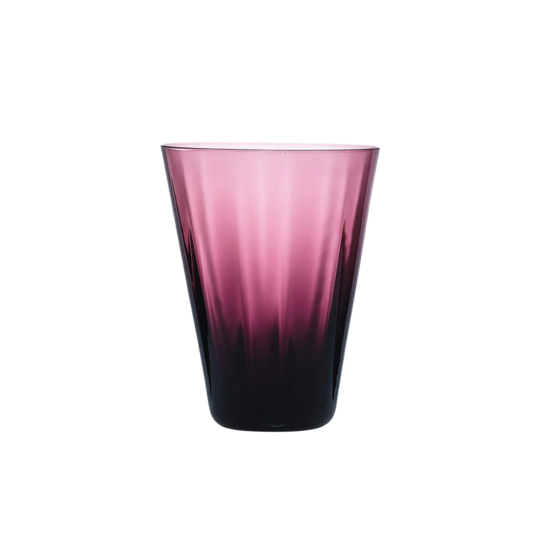 A mouth‑blown amethyst glass tumbler with internal optic detail and a clear sculptural knot accent—elegant and artfully crafted.